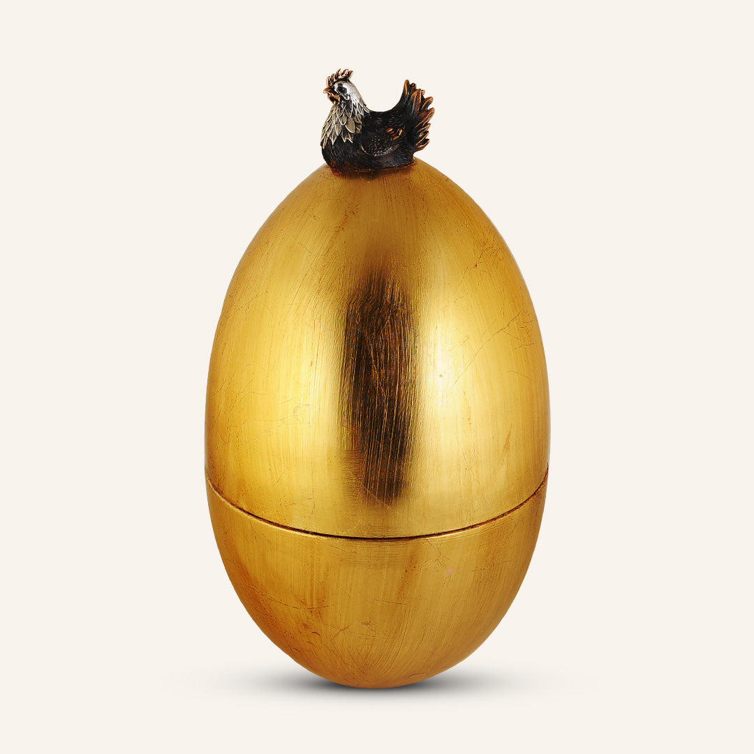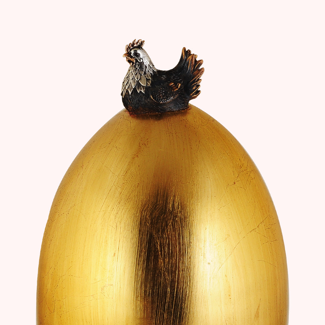 A combination of art and elegance… This specially designed egg with a detailed chicken separated by gold plating and handcraft adds a unique touch to your decoration.