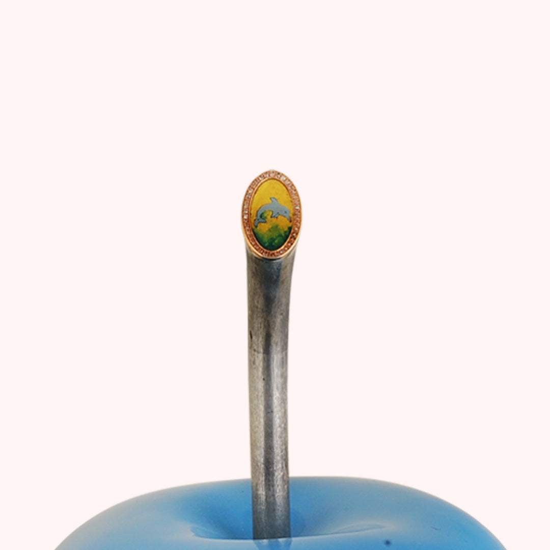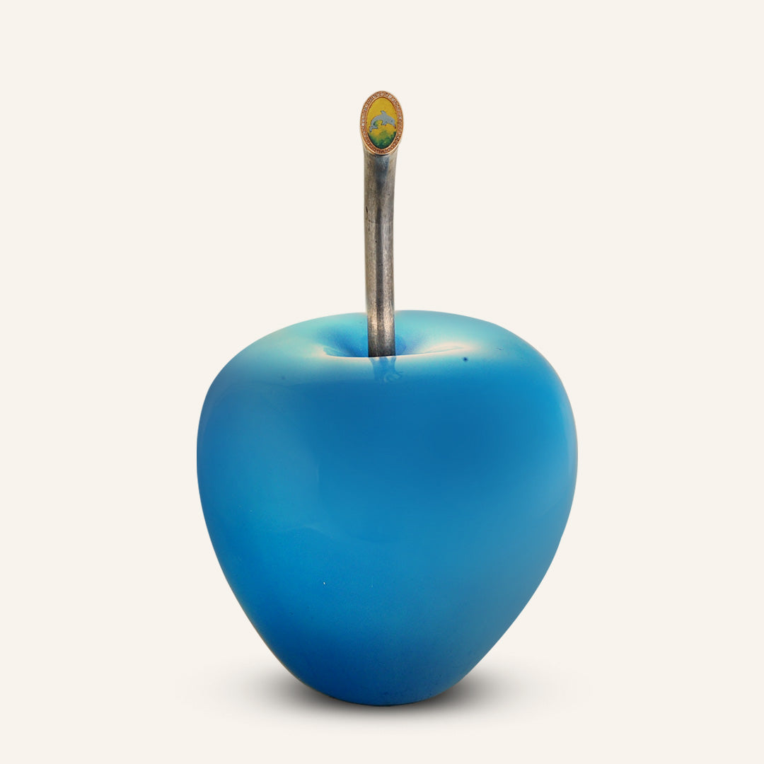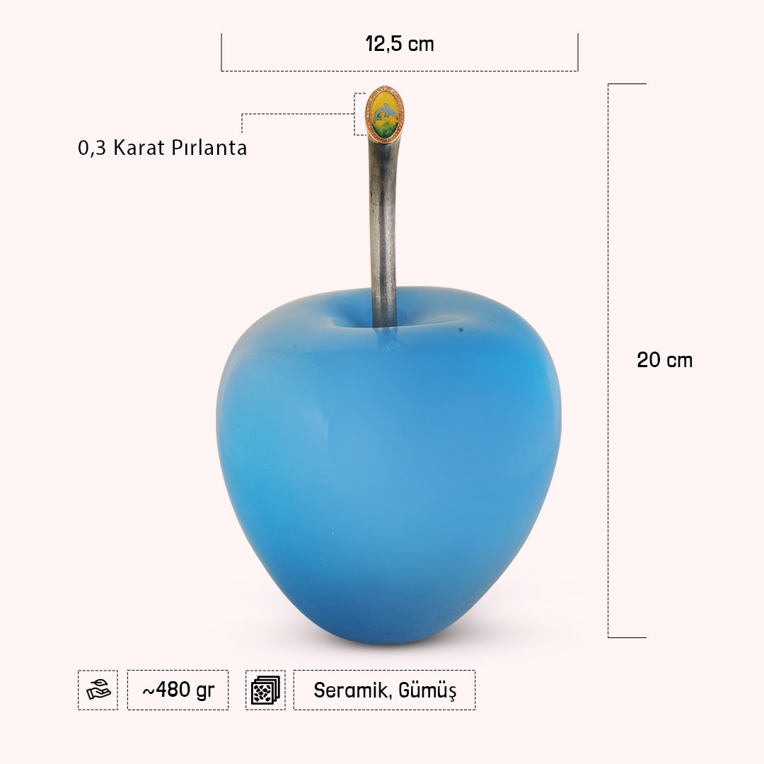 Denizlerin özgürlüğünü ve huzurunu yansıtan benzersiz bir tasarım… Canlı mavi rengiyle dikkat çeken bu dekoratif elma, sapındaki zarif yunus figürü ile dinamizmi ve neşeyi simgeliyor.