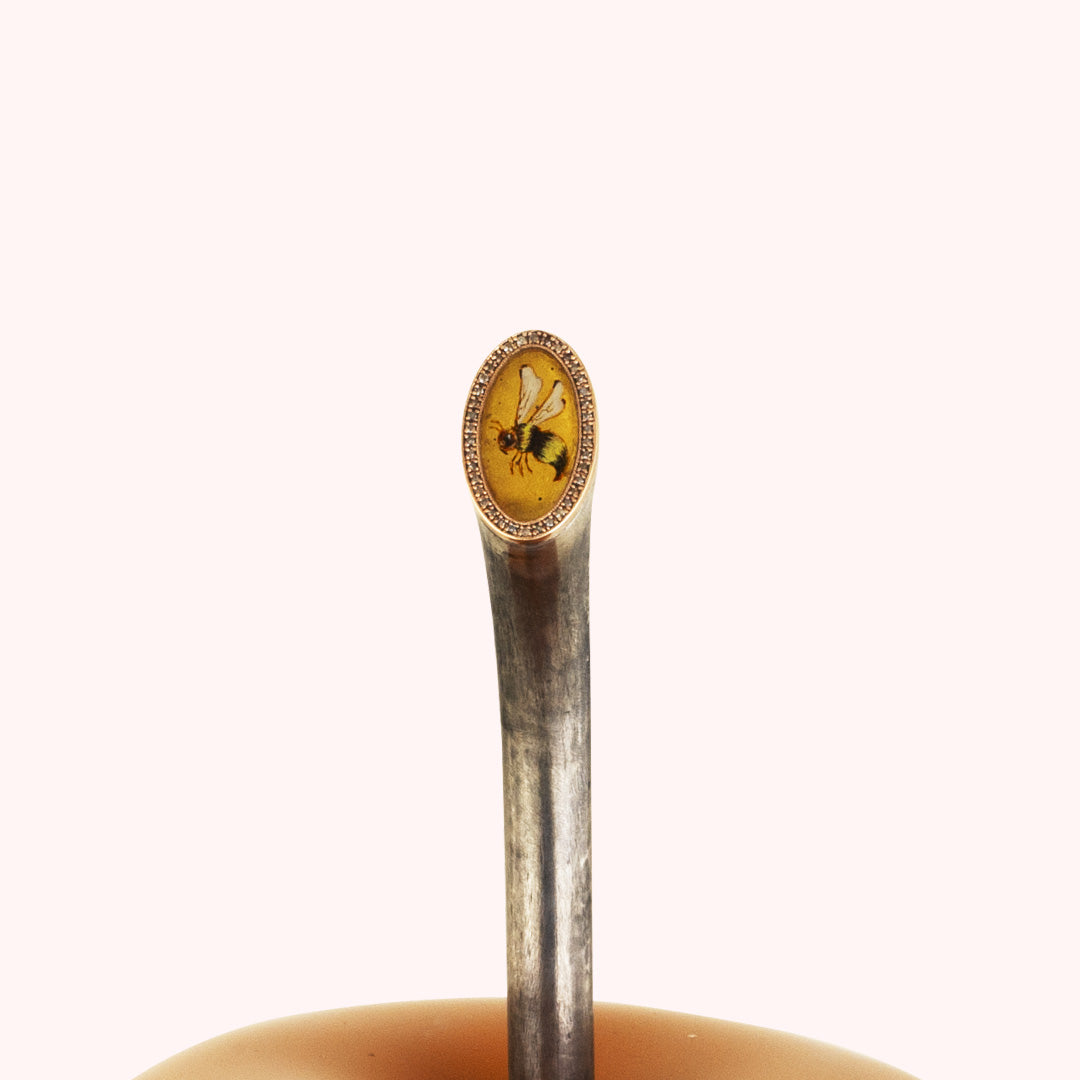 Eski geleneklerde arılar zeka, topluluk ve adanmışlığı sembolize ederdi. 0,30 karat pırlanta ile süslenmiş bu parça, sebatla elde edilen refahın sürekli bir hatırlatıcısı olarak ilhamla parlıyor.