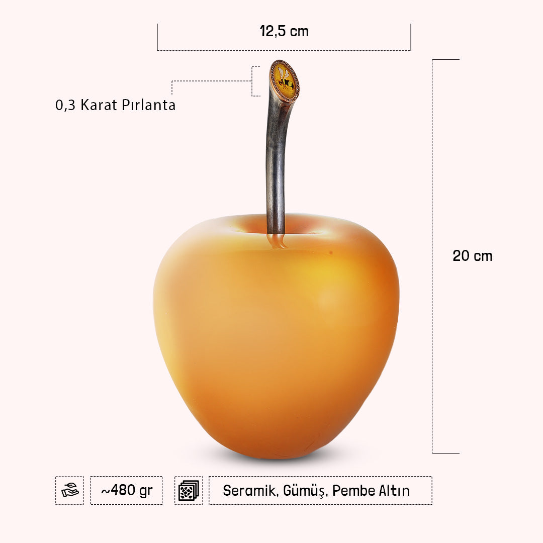 Bereketin azimle buluştuğu yerde, çalışkan arı tarafından öpülen altın bir elma. Parlak sarı renk yaşam enerjisi ve iyimserlik yayarken, altın detaylarla yontulmuş arı bilgelik ve çalışkanlık hikayeleri fısıldıyor.
