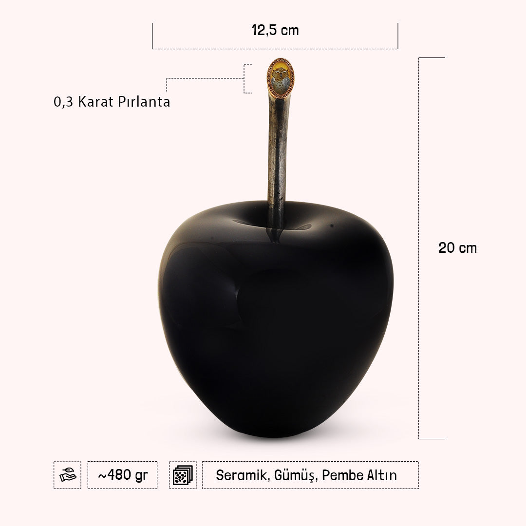 Büyük Boy Siyah Elma – Baykuş Figürlü