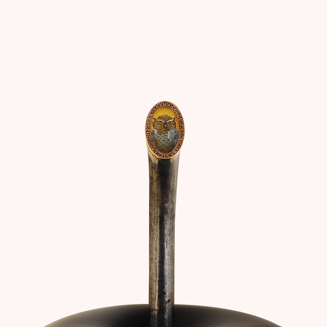 Derin siyah rengi ve zarif baykuş figürüyle dikkat çeken bu özel tasarım, bilgeliği ve gizemi bir araya getiriyor.